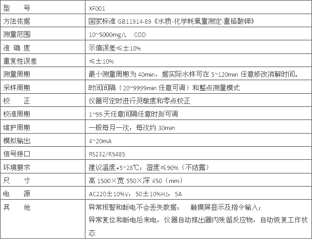 水樣、重鉻酸鉀消解溶液、硫酸銀溶液(硫酸銀作為催化劑可以更有效地氧化直鏈脂肪族化合物),以及濃硫酸的混合液加熱到165℃,重鉻酸離子氧化溶液中的有機物顏色會(huì )發(fā)生變化,分析儀檢測此顏色的變化,并把這種變化換算成COD值輸出出來(lái)。消耗的重鉻酸離子量相當于可氧化的有機物的量。